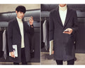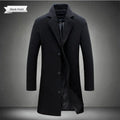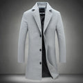 2024 Spring Autumn New Long Cotton Coat New Wool Blend Pure Color Casual Business Fashion Men's Clothing Slim Windbreaker Jacket