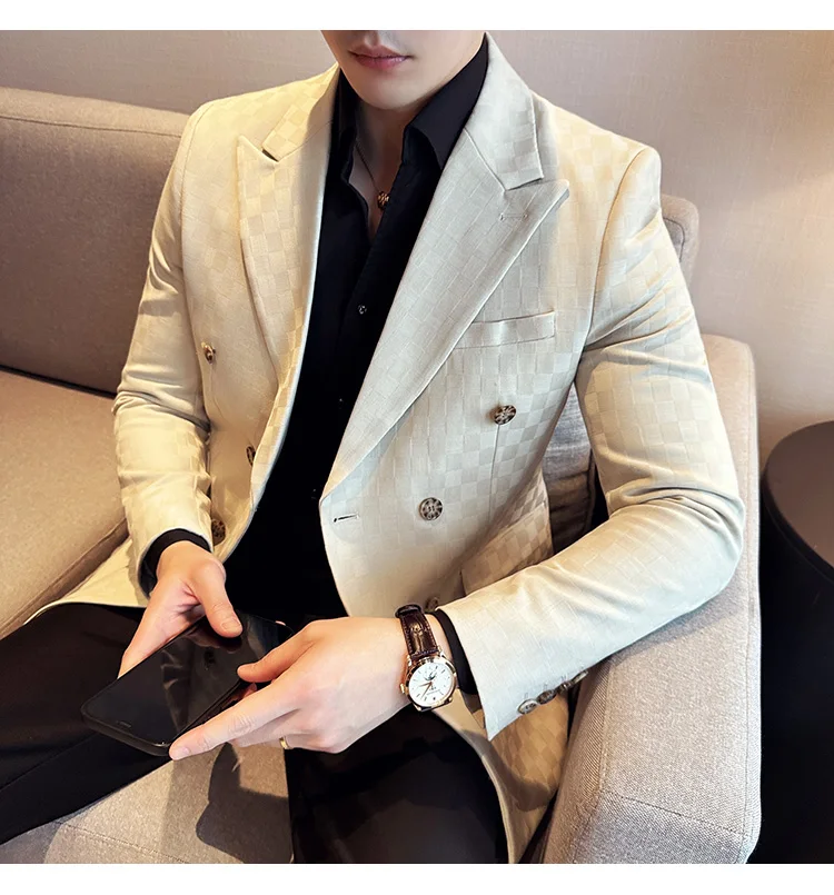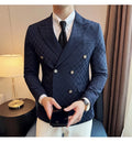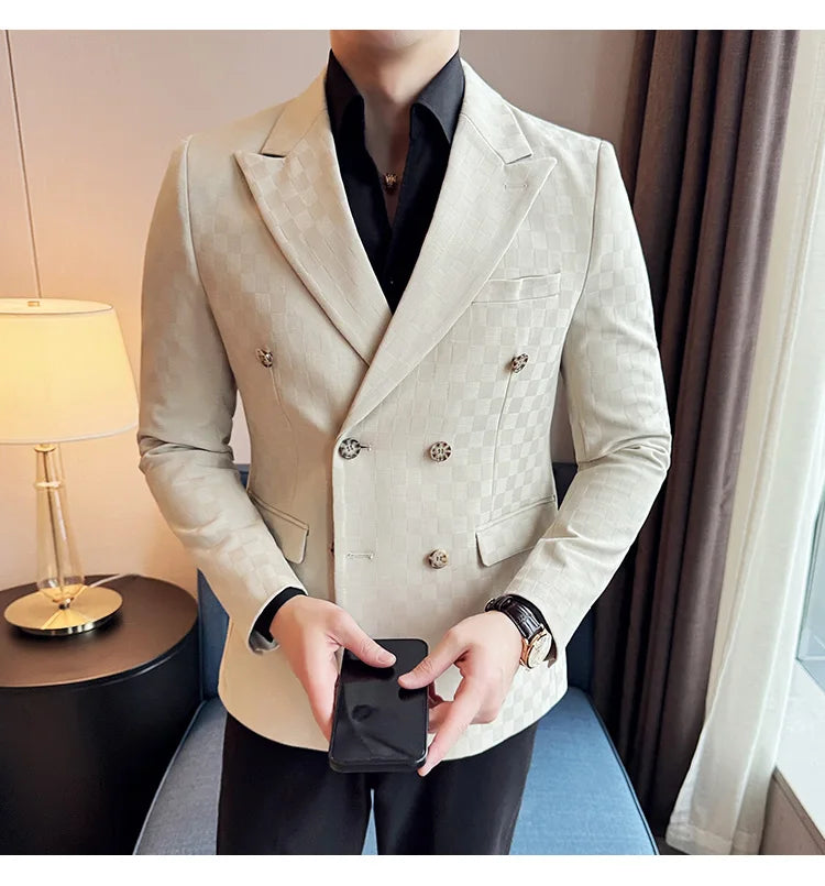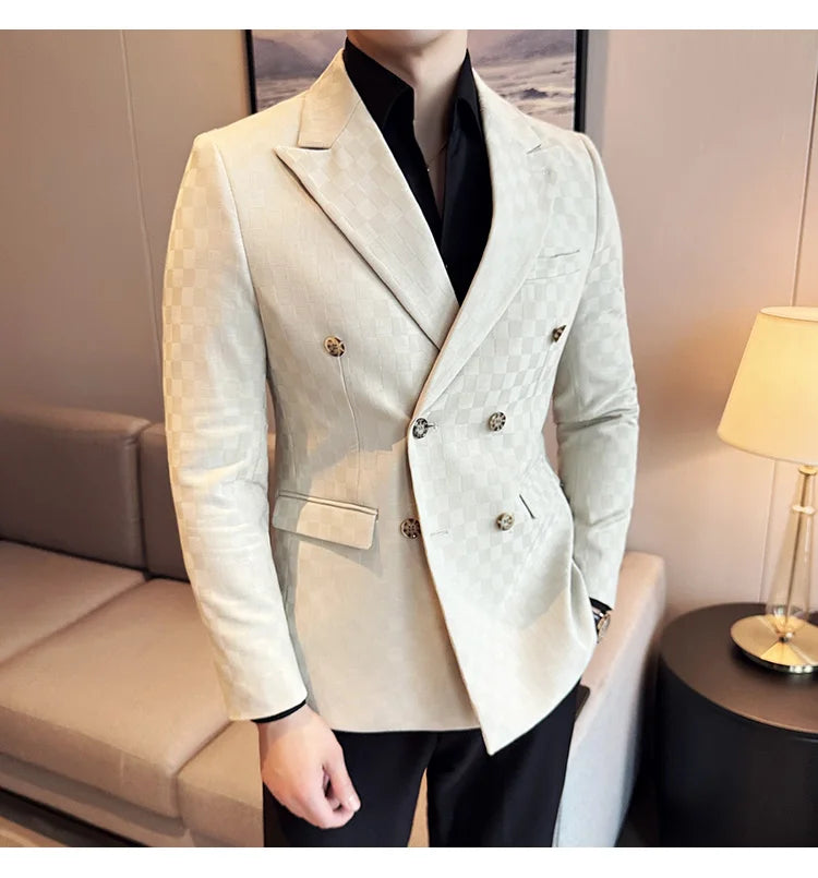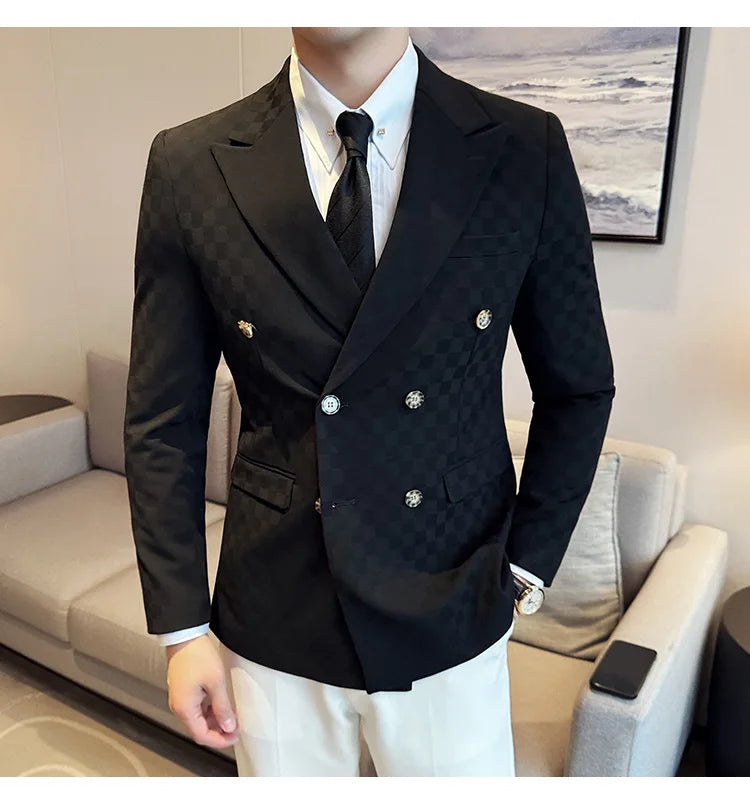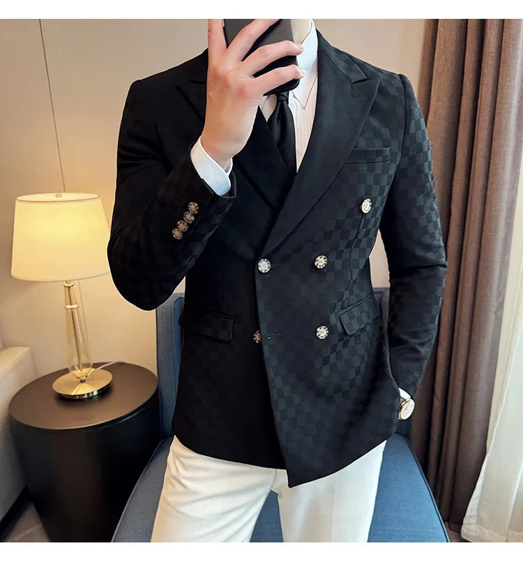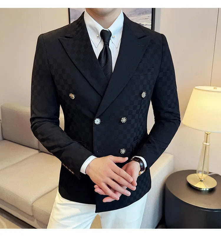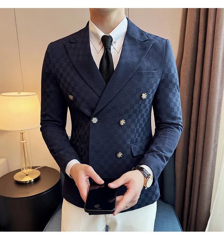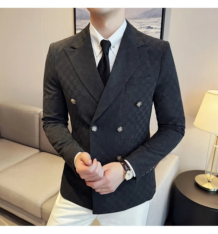 6 Color Fashion Double Breasted Plaid Suit Jacket Luxury Men Slim Fit Business Social Wedding Formal Suit Coats Plus Size 5XL-M