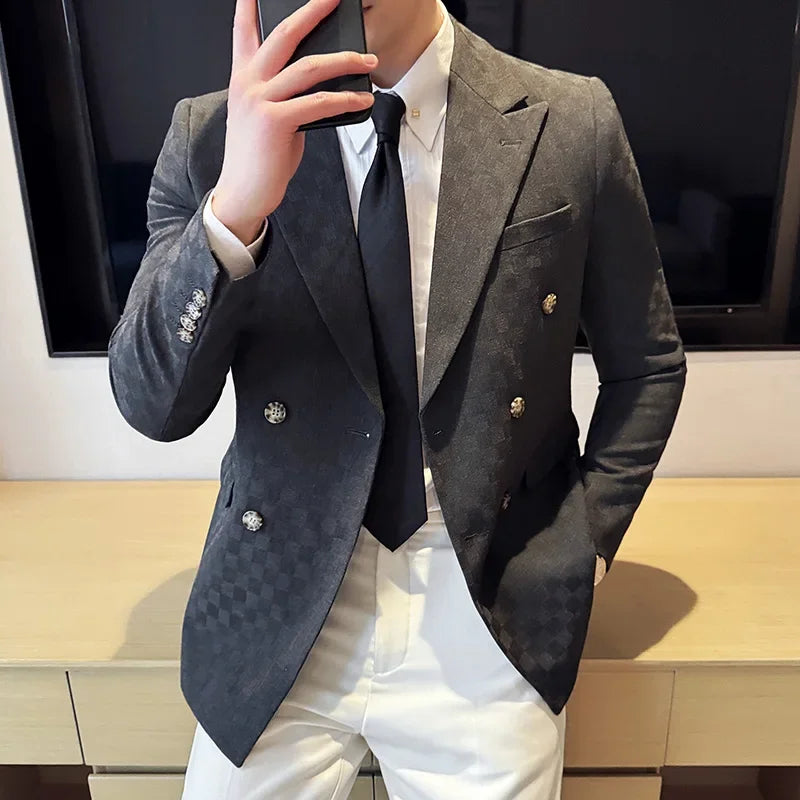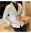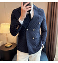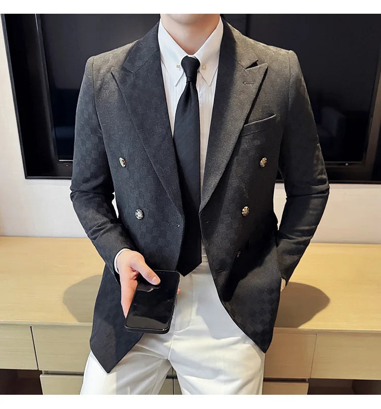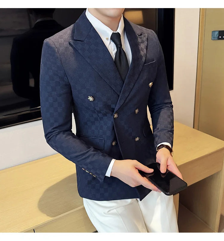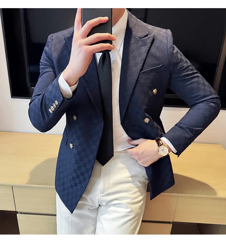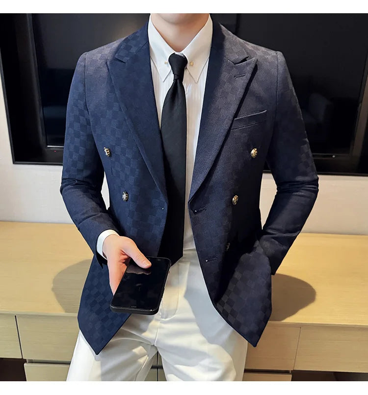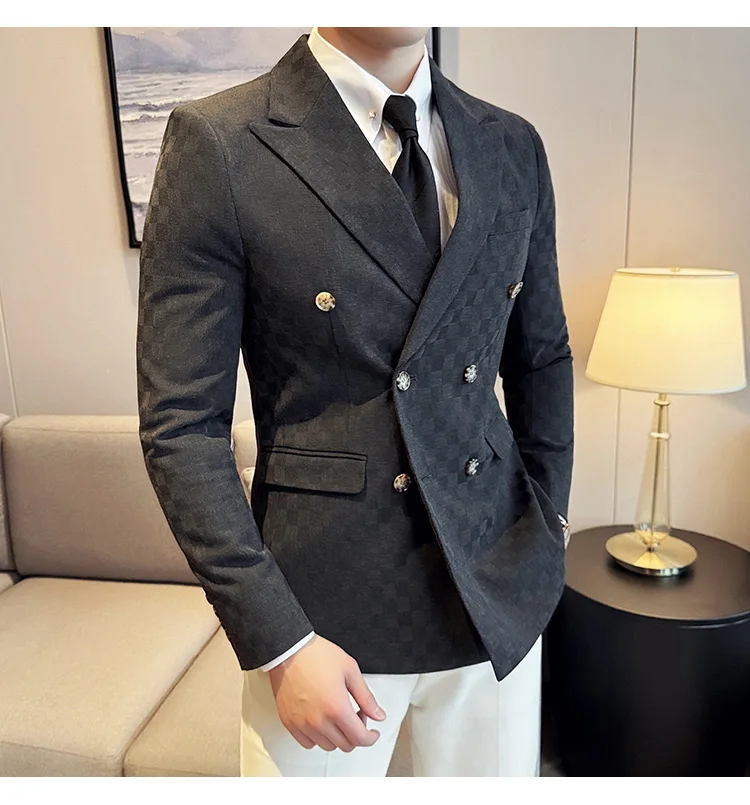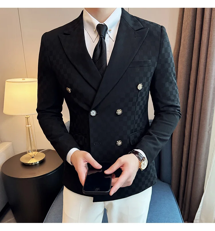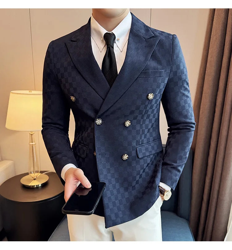 6 Color Fashion Double Breasted Plaid Suit Jacket Luxury Men Slim Fit Business Social Wedding Formal Suit Coats Plus Size 5XL-M