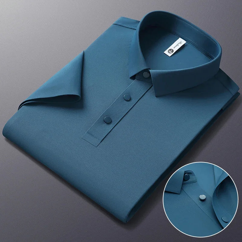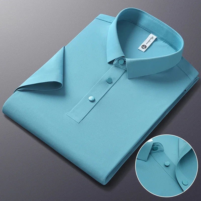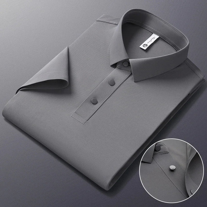Crafted from a high-quality blend of nylon and spandex, this polo delivers lightweight breathability, a smooth touch, and an impeccable fit, making it the perfect choice for gentlemen who value elegance without compromising on practicality.