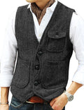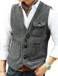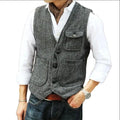 Men's Business Suit Vest Herringbone Tweed V Neck Formal Waistcoat for Wedding Suit or Tuxedo