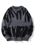 New Popular Autumn Winter Irregular Jacquard Pattern Pullover Sweater Casual Round Neck Contrast Color Knitted Men's Pullover