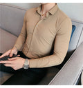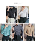 Plus Size 4XL-M High Elasticity Seamless Shirts Men Long Sleeve Top Quality Slim Casual Luxury Shirt Social Formal Dress Shirts